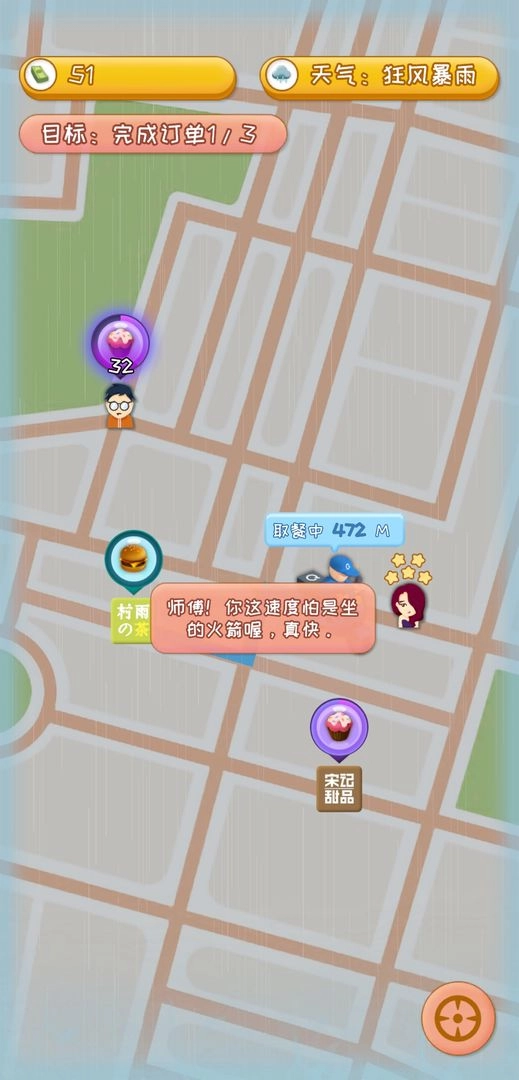 2、每位顾客要求的送达时间都不一致,玩家需要认真规划取餐及送餐路线。