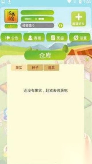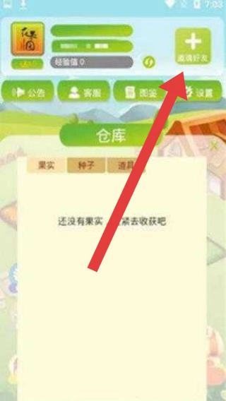 2、打开仓库后,点击【邀请好友】,分享游戏,邀请好友助力,获取种子、道具等奖励。