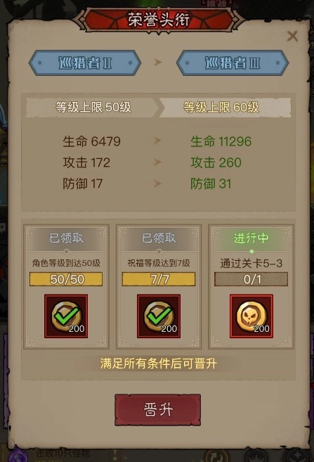4、角色的等级决定了能用什么等级的装备,刷小怪会涨经验。不过也别光顾着升级,荣誉头衔会限制等级上限,得解锁更高的头衔才能继续往上提升。