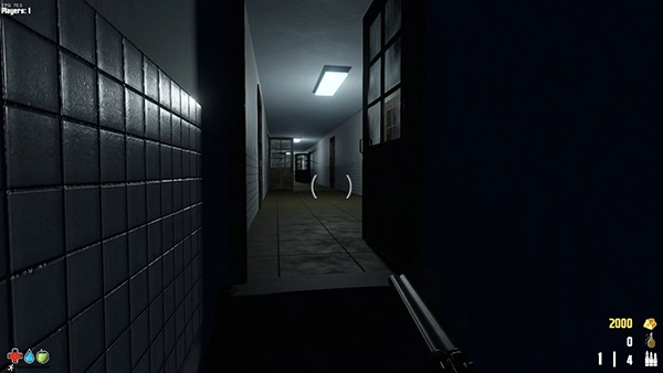 初始场景设在一间黑暗房间,装备有微弱照明的手电筒,请及时寻找线索与地图。