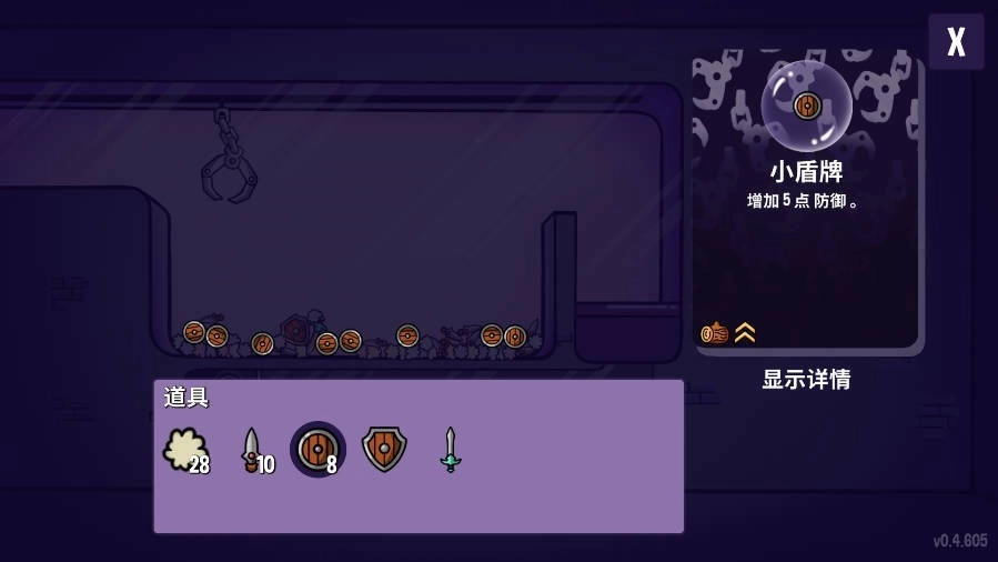 玩家能够通过操控娃娃机的玩法模式,抓取各式各样的物品,如武器、盾牌、消耗品等,并不断调整自己的战斗策略。