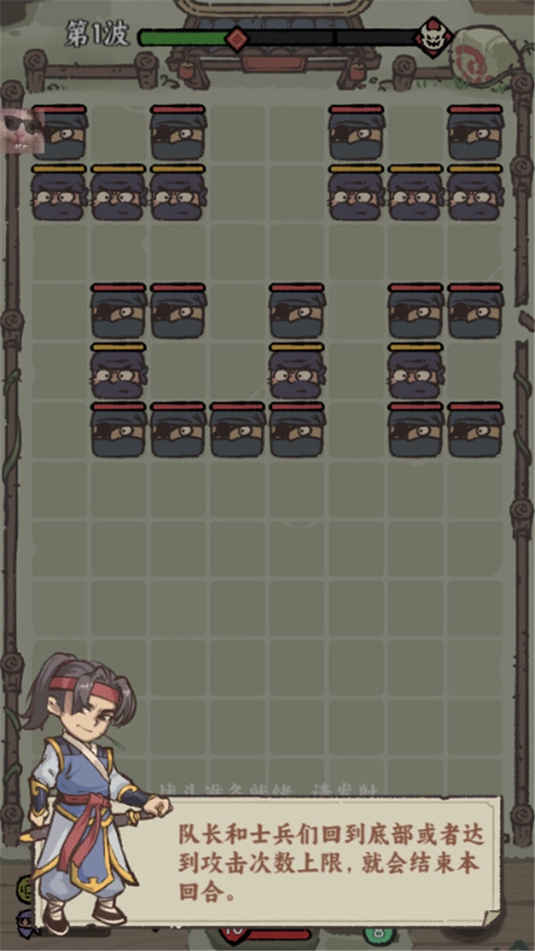 5、队长和士兵们回到底部或者达到攻击次数上限,就会结束本回合。