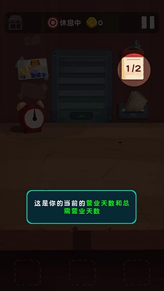 1、日历显示了玩家当前的营业天数以及玩家所需的总营业天数。