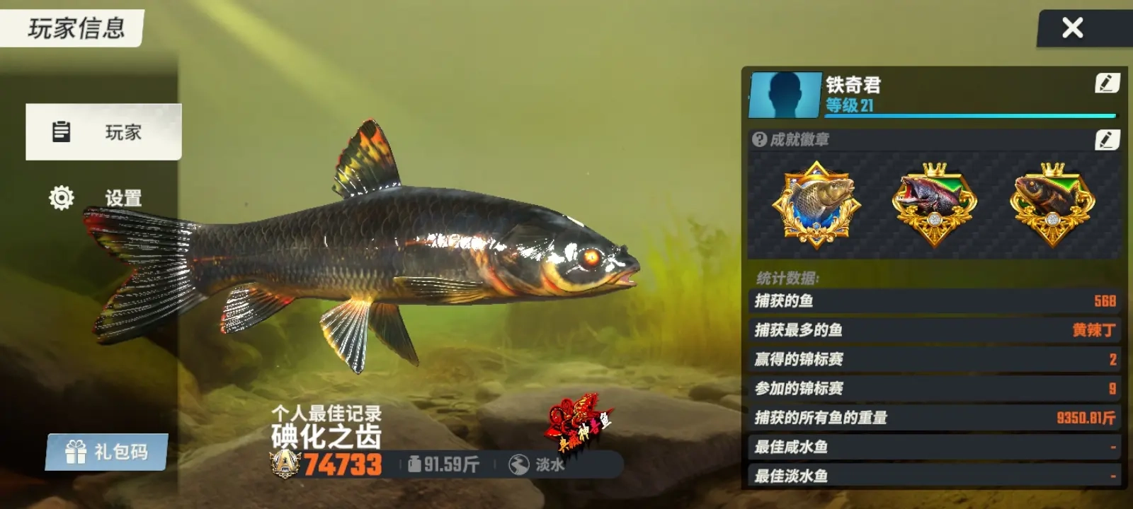 6、钓上来的鱼越稀有、越重,得分就越高,努力提升你的个人排行吧!