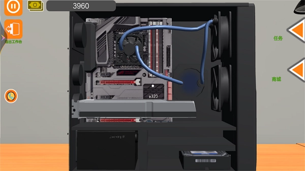 2、在邮箱里选择自己感兴趣的任务,在商城里购买配件,在办公桌上组装电脑!