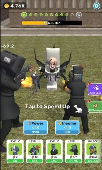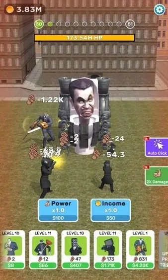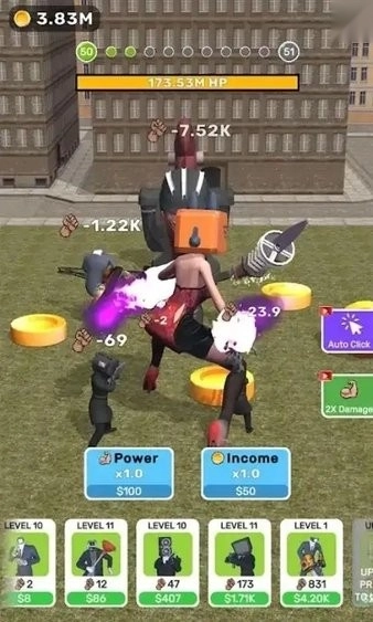 斯基比迪厕所响片游戏手机版里藏着超多角色等你解锁,马桶人、监控人、电视人等应有尽有,每个怪物的战斗力各有不同。玩家将在此开启一场大乱斗,游戏还融入了大量搞笑元素,幽默又滑稽,快来体验吧!