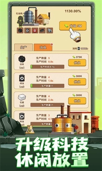 石油大富翁是一款趣味十足的放置经营游戏,讲述的是“一亿小目标”背景下的石油大亨养成故事。在游戏里,你将以一名小型石油勘探者的身份起步,在不大的矿场中不断挖掘,开采出丰厚的石油资源运回家;通过一步步积累,你要在全球版图上构建起自己的石油帝国,最终成为世界顶尖的石油巨富。