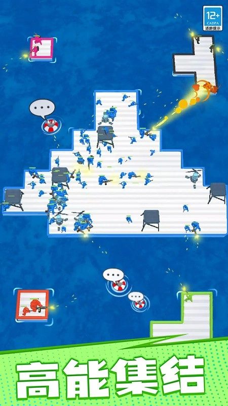 2、玩家需要坐在竹筏上对抗攻击,并收集宝箱来扩大竹筏,同时注意灵活的操作角色,空闲的时候攻击所有的对手,大量的角色和武器都会等您收集,游戏玩起来也会相当的刺激。
