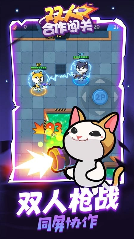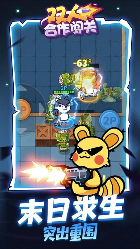 游戏结合了双人枪战的玩法,玩家通过同屏协作的方式,展开激烈的战斗。