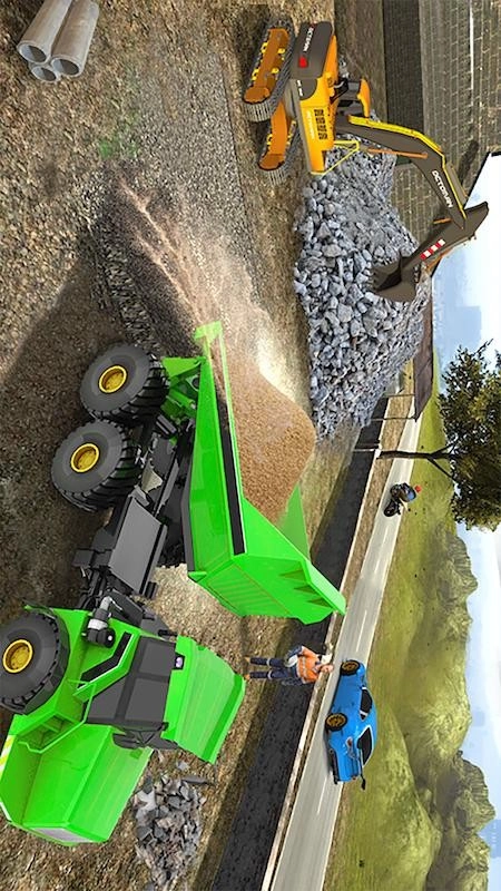 2、工作现场还有其他各类工程机械可供使用,如履带式推土机、铲车,自卸车等,各种各样的工程任务,享受到超多的快乐,超级的好玩,适合玩家休闲的时候轻松的加入,让您欢乐十足。