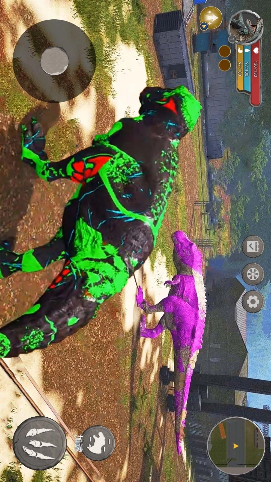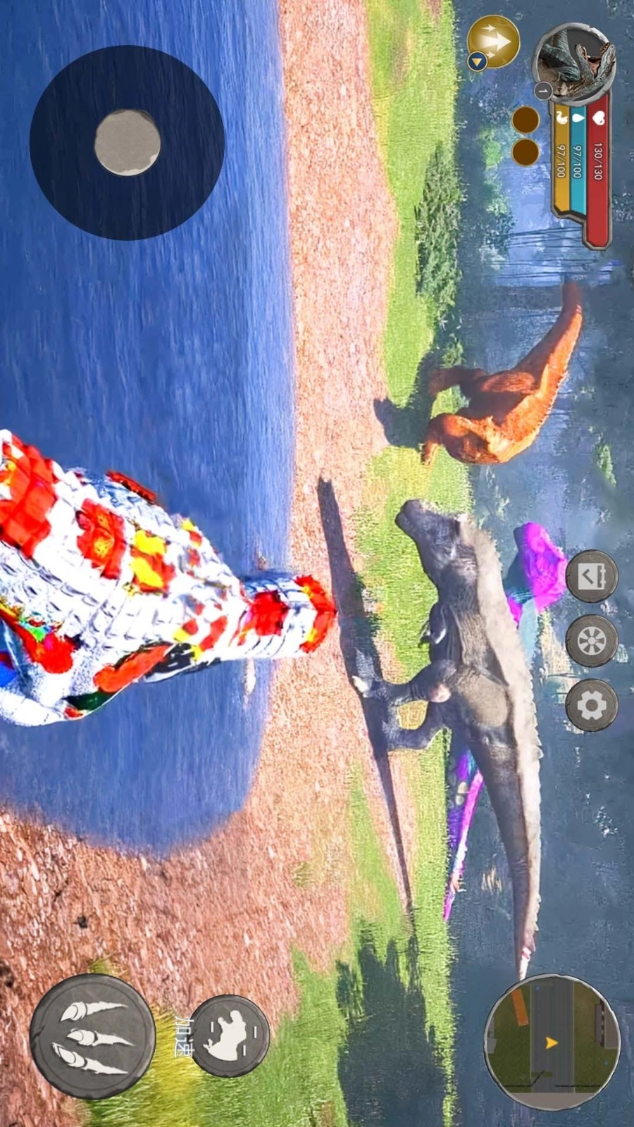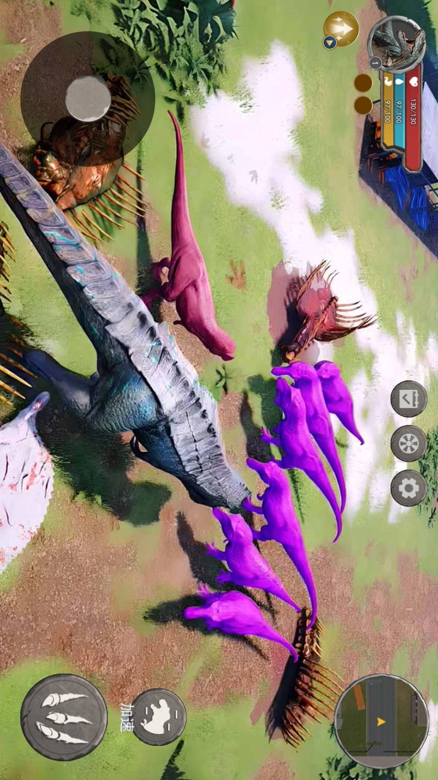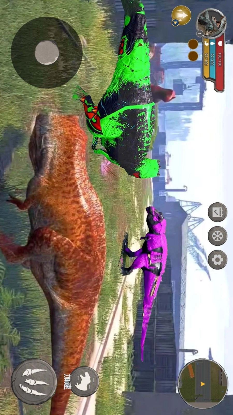 1、灵活控制走位前往不同区域,通过走位奔跑的方式追上所有目标,同时也能以此甩开追逐自己的恐龙。