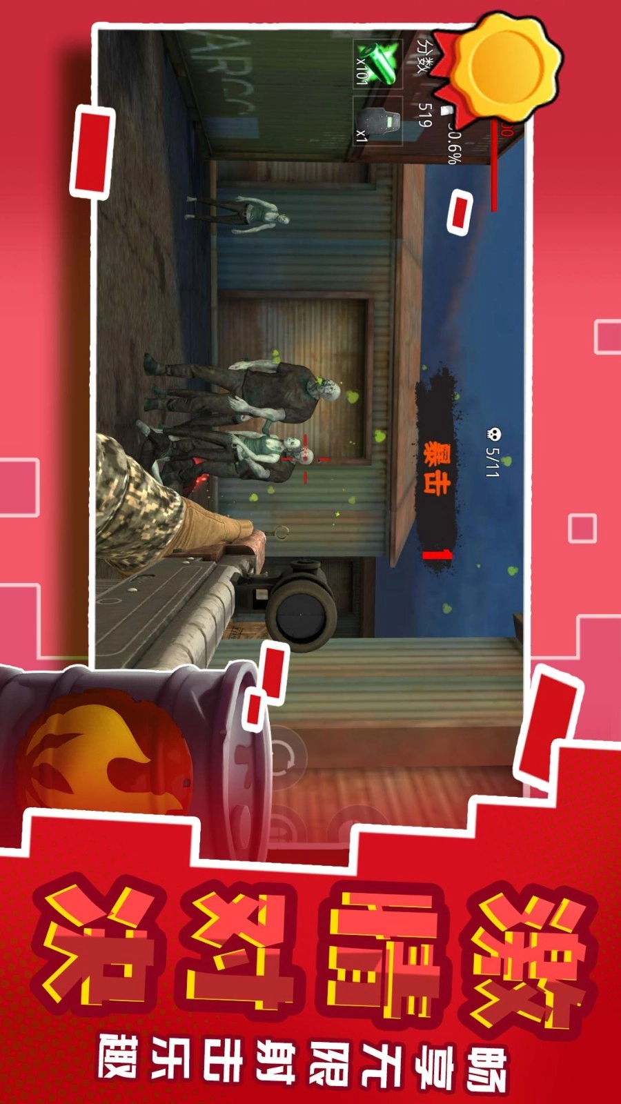 灵活控制角色发起进攻,保证安全的同时消灭僵尸。