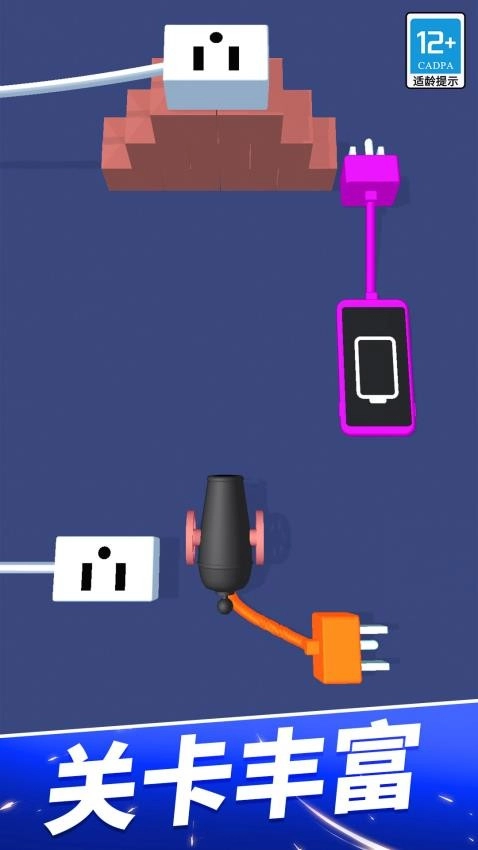 3、简单易趣的趣味挑战,还有海量关卡的益智谜题,让人感到心情放松,同时游戏还给您增加了大量的皮肤,各种插座和插销的皮肤,进一步增强了游戏的可玩性,十分耐玩。