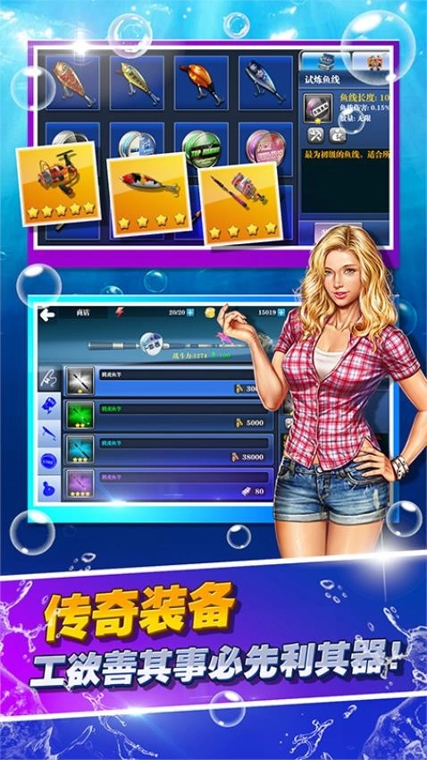 渔具设备逐渐解锁购买,以此提高整体成功率和收获。
