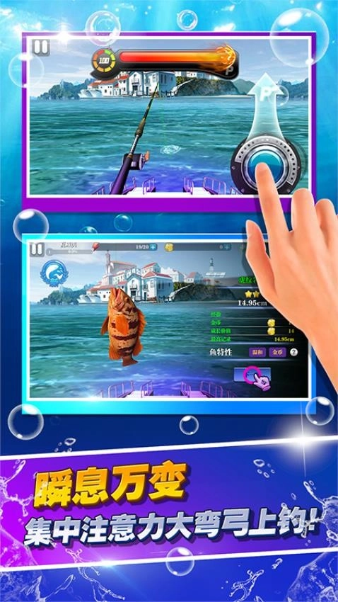 《疯狂钓鱼》是一款钓鱼题材的休闲游戏,它带领玩家前往全球各地风格迥异的钓鱼场所,像国内的长江、洞庭湖,还有大堡礁、黄金海岸等地都包含在内。每个钓鱼场地都采用细腻的3D表现方式呈现,玩家能感受到在富有异国风情的水域中垂钓的趣味。