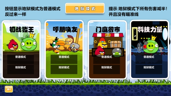 4、呼朋唤友模式比初战猪王模式额外增加了大嘴鸟、坤坤篮球鸟、气球鸟、头盔鸟四种小鸟,闯关模式与前者一致,游戏开局还能解锁新的小鸟和技能,助力您更快的闯关挑战。