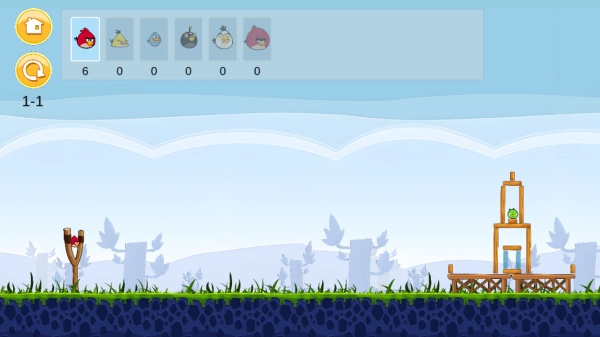 滑动屏幕来拉动弹弓抛射小鸟,攻击前方的绿色小猪,想尽一切的办法,顺利消灭。