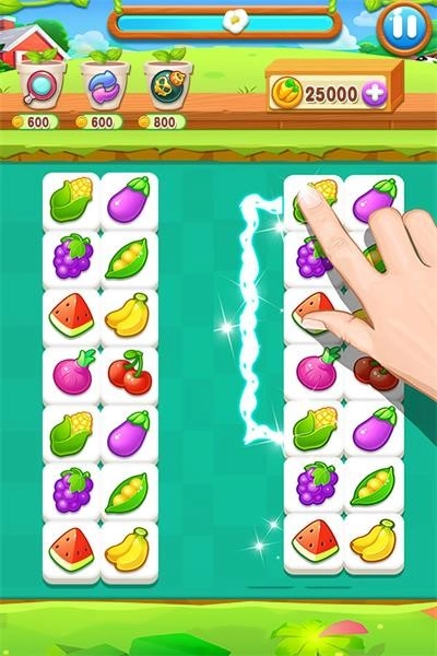 2、消除复杂难以配对的水果和蔬菜时,可以找到可以作为中转的图案;