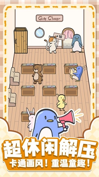 2、可爱的动物朋友和你在一起,每个特邀嘉宾都有不同的能力,可以通过单击来显示有益的功能,还可以驱赶来捣乱的客户,完成游戏的任务,收获更多的奖励,以便于更好的装扮专属的服装店。