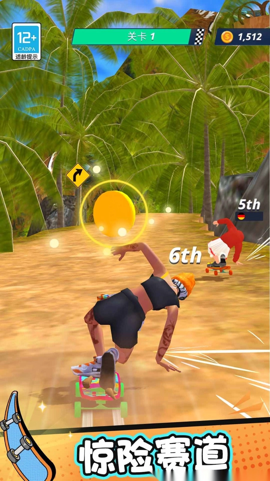 5.刺激的滑板挑战和更丰富的关卡冒险过程,每一次考验都是非常惊险和让人特别上瘾的。