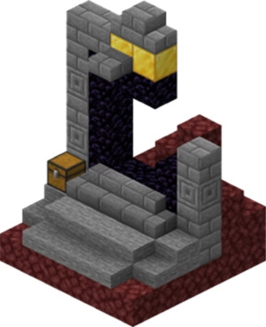 半掩埋的废弃传送门会生成在Y坐标为n−n2加上一个2-8之间的随机整数的地方生成。这表示整个结构上端的2-8格会暴露在地表之上。