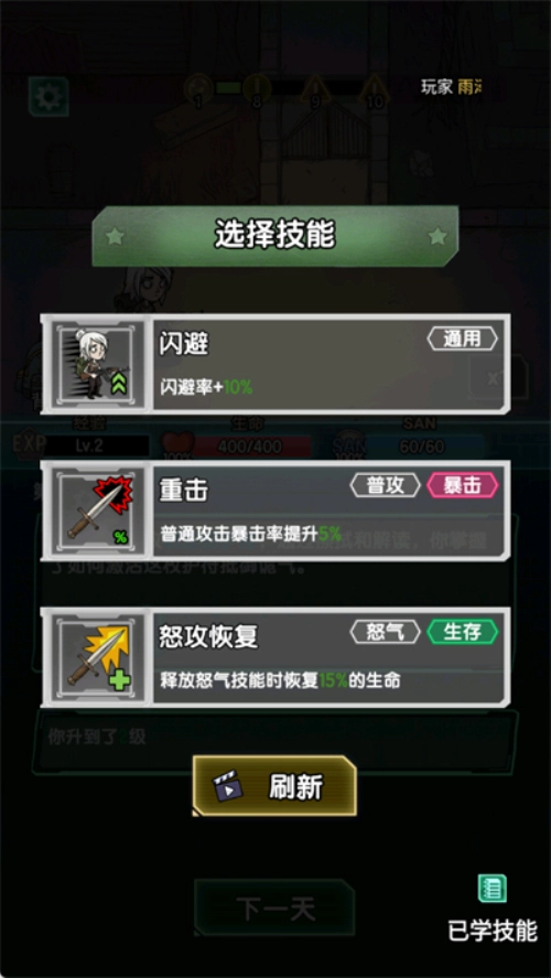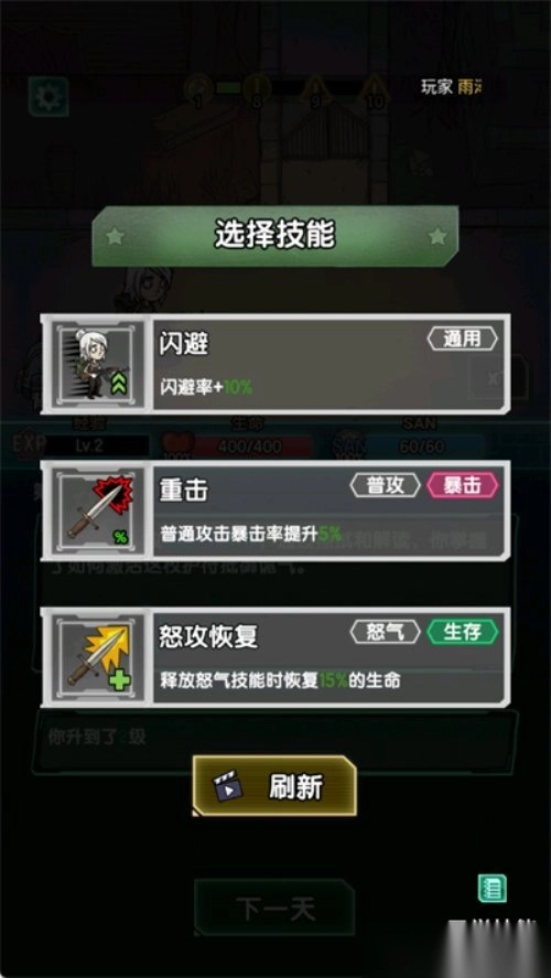 2. 当你升级时可以获得一次选择技能的机会。