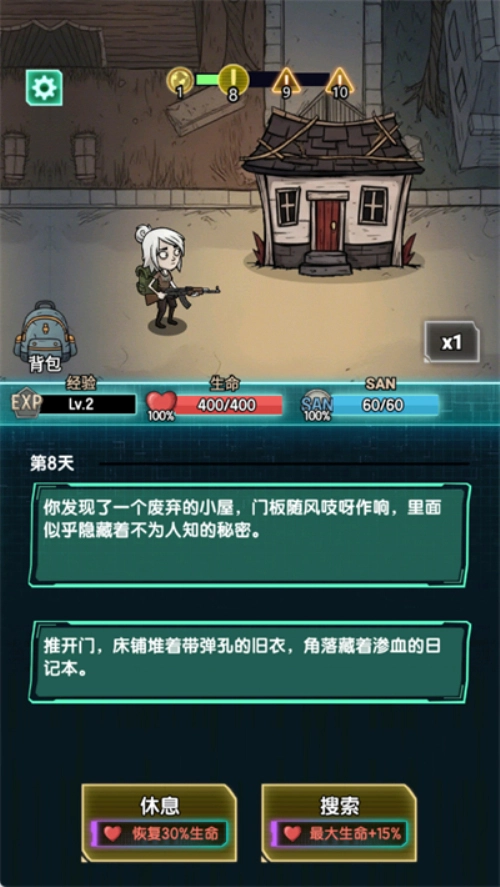3. 遇到未知房间可以进行搜索或者休息。