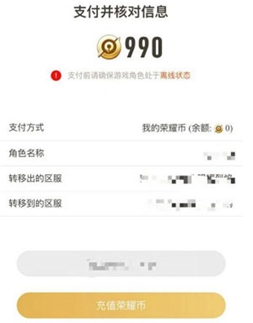 5、最后选择需要转移出去的账号以及目标大全,选择完毕后点击确认转移,之后支付990荣耀币即可开始转移。