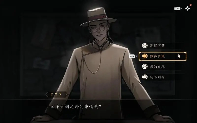 在质问引珠后,继续推理,并选择"因为意外"来推动案件进展。