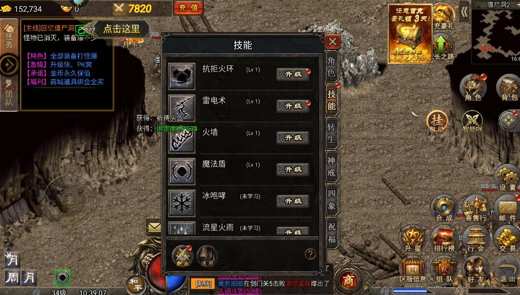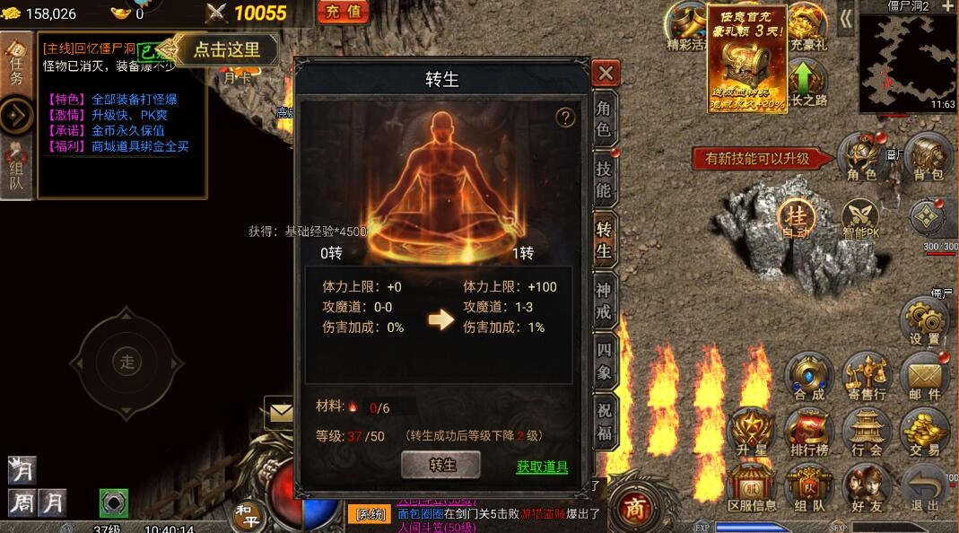 达到指定等级后即可进行转生,转生能提升玩家的体力上限和伤害加成。