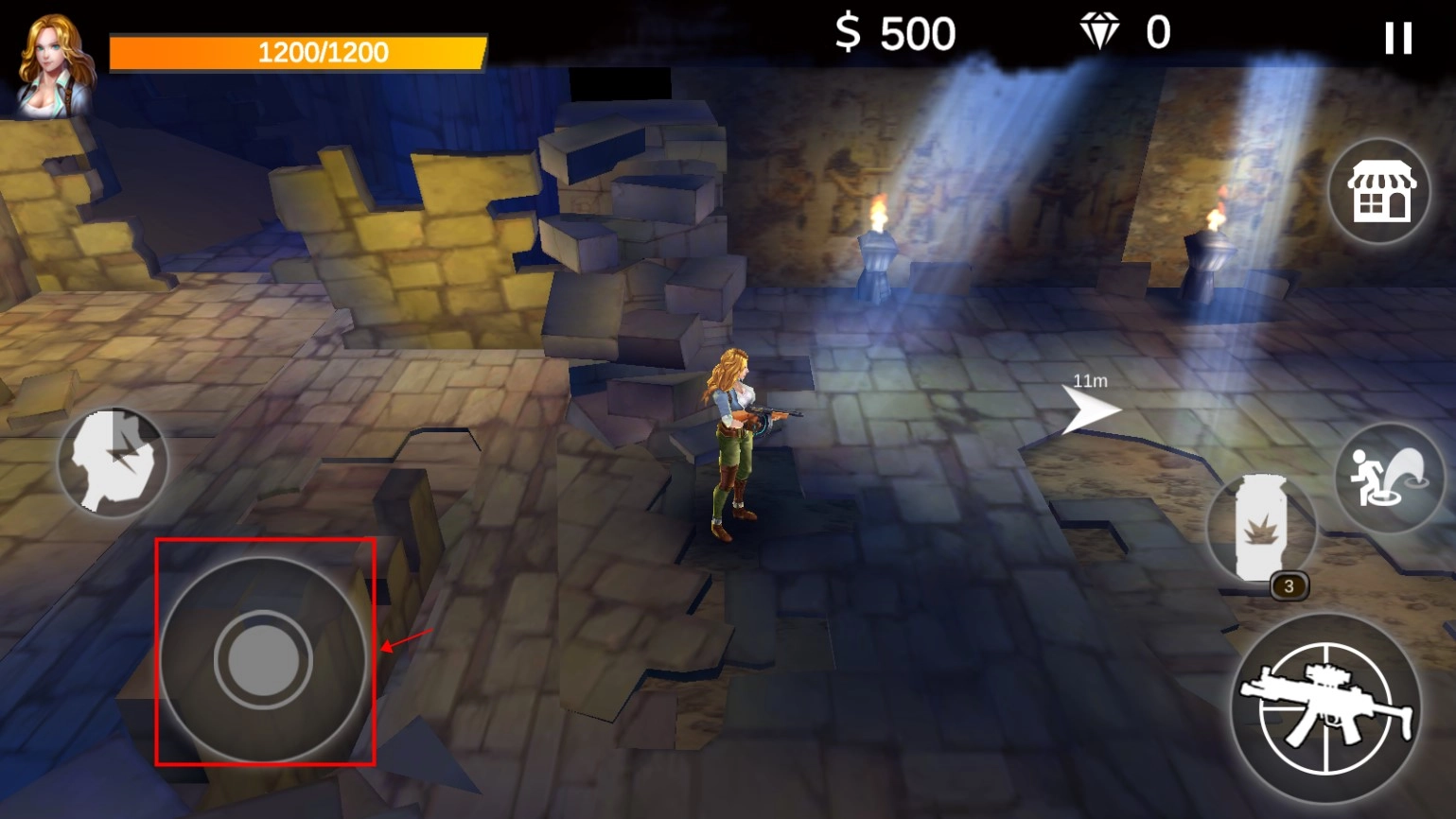 游戏提供多种道具使用,玩家可以通过攻击按钮收集各种武器和弹药。