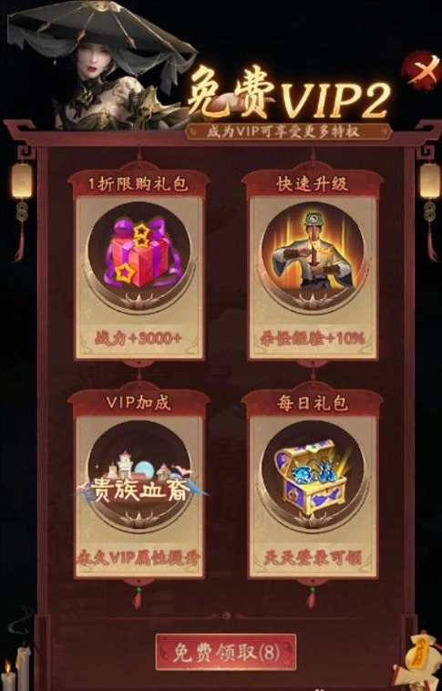 VIP999:宝藏钥匙*3 2级攻击宝石*1 50银锭*1 30万铜板*1