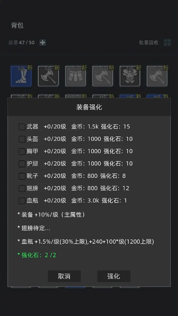 4、玩家能够借助升级与强化装备的方式增强自身战斗力,进而解锁更厉害的技能和装备。