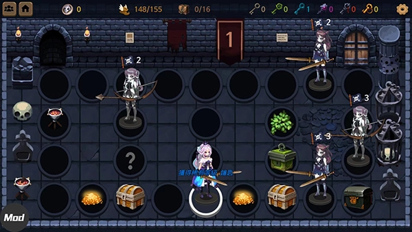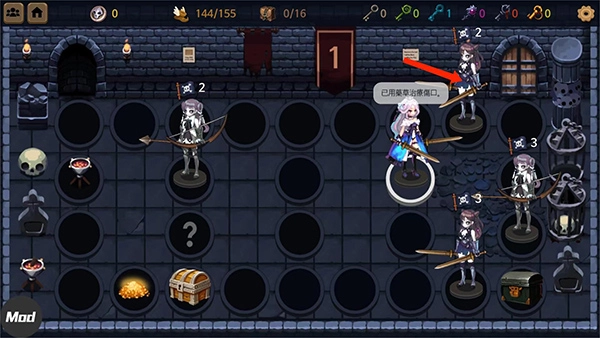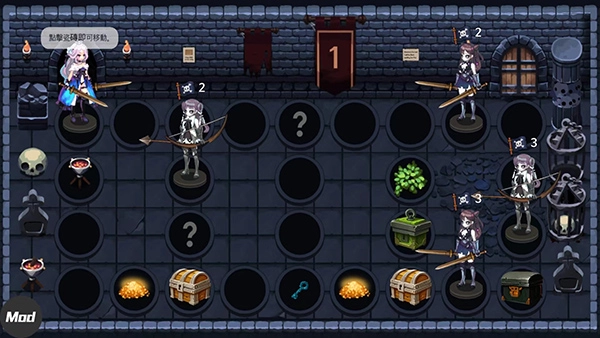 4、进入副本界面,点击圆形瓷砖可以移动角色,