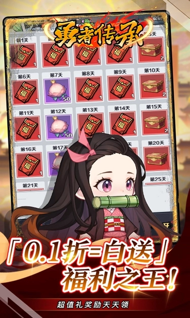 《勇者传承》依托热门动漫打造沉浸式放置策略体验,将热血沸腾的5v5对决与休闲护肝的放置养成玩法巧妙融合!Q萌可爱的斩鬼之王将化身鬼杀队成员,助你组建独属于自己的猎鬼小队,一路斩除世间所有恶鬼,亲手谱写专属于你的斩鬼史诗!现在就踏上猎鬼征程,成长为能斩尽万鬼的巅峰剑士,守护人间那道最后的黎明曙光!