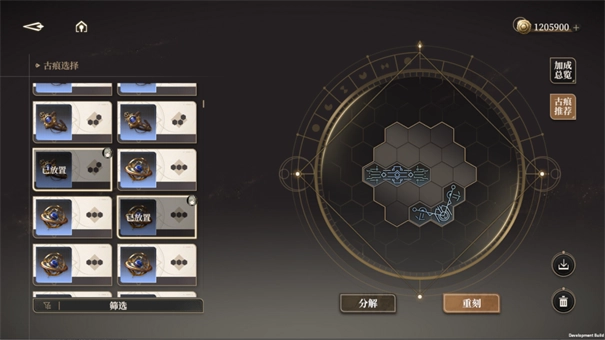 4、古痕在生成时会带有1条随机属性,玩家可以选择相同名字的古痕进行合并(最多2次),合并后的古痕可以通过反向拆解进行调整。