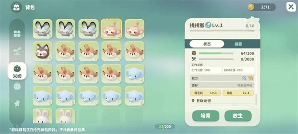 调皮桃桃猴 主打一个玩闹/生命值+5 工作效率-10%
