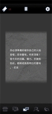 2、进入游戏中,可以看到游戏整体,中间的就是以小说形式,什么三个从左往右是票卷、暂停、设置,下面是成就、相册、主页、人物、时间轴;