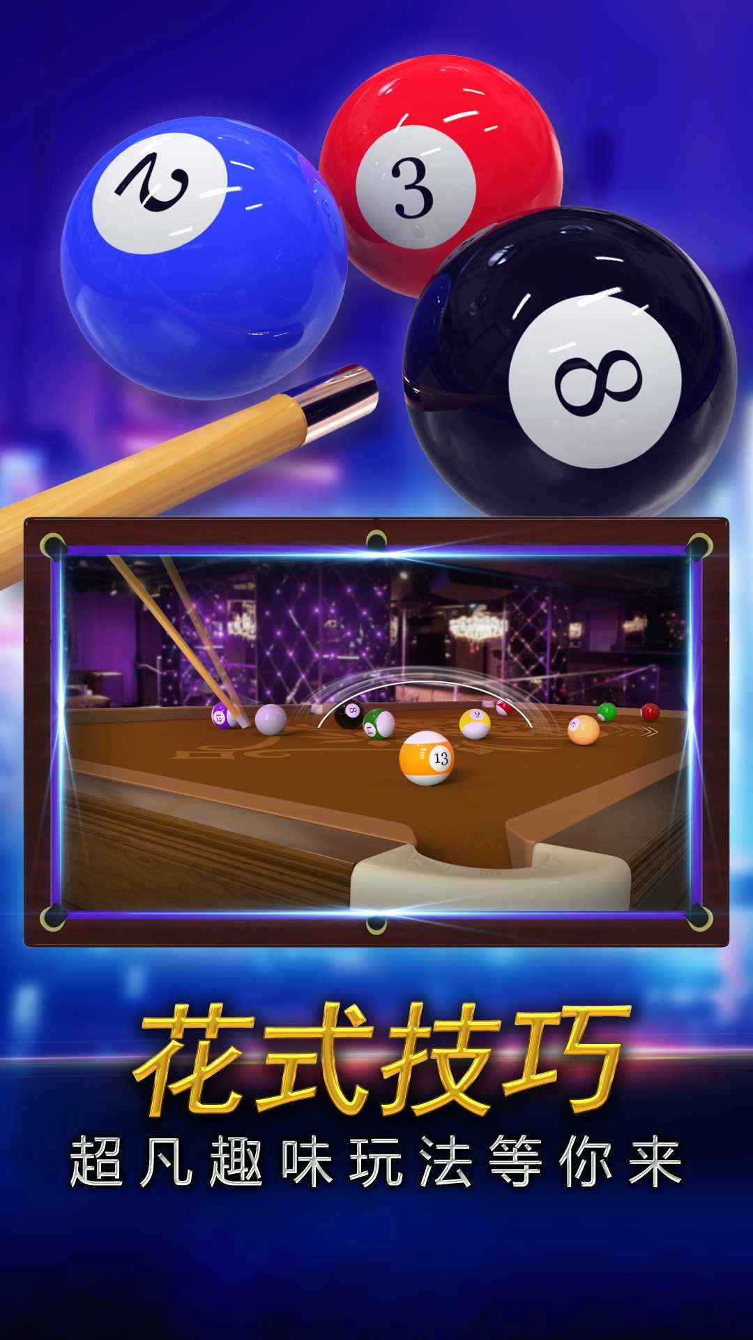 1、精致细腻且高度逼真的3D画面,精准模拟真实台球的球体碰撞物理效果,为你带来如临其境的沉浸式台球体验;