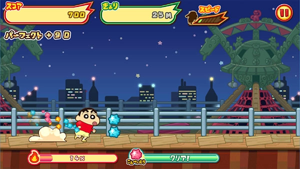 1、以春日部为跑酷的舞台,穿梭在春日部的街道之上,收集更多的巧克力饼干,获得更高的分数吧。