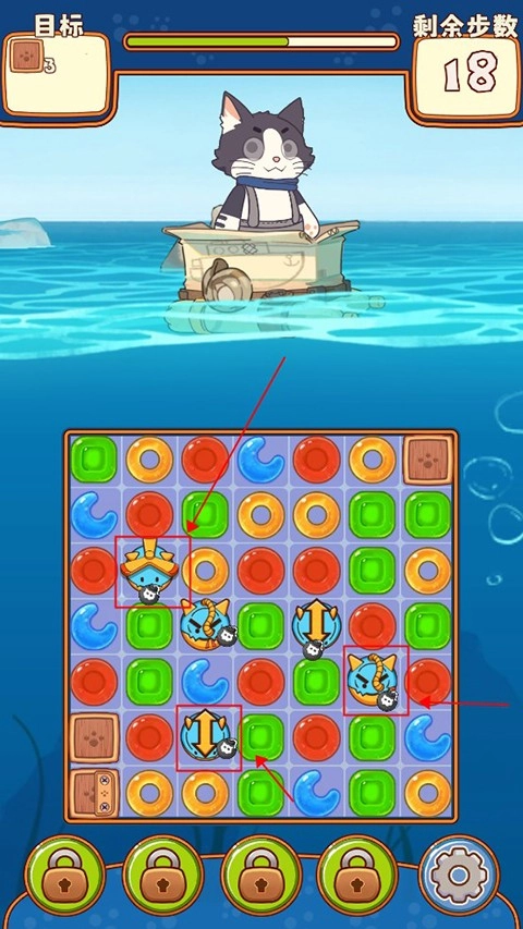 滑动手指就能凑出三消,轻松上手,手感爽快~伴随关卡推进解锁丰富多样的障碍和技能道具,和猫猫一起轻松出海快乐游戏!