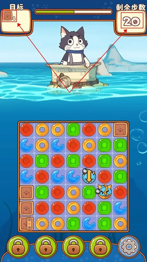 4、游戏左上角为消除目标,右上角为使用步数。