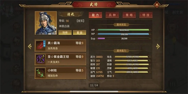 (2)智力(精神):决定武将使用法术造成的伤害、受到法术攻击时的损伤