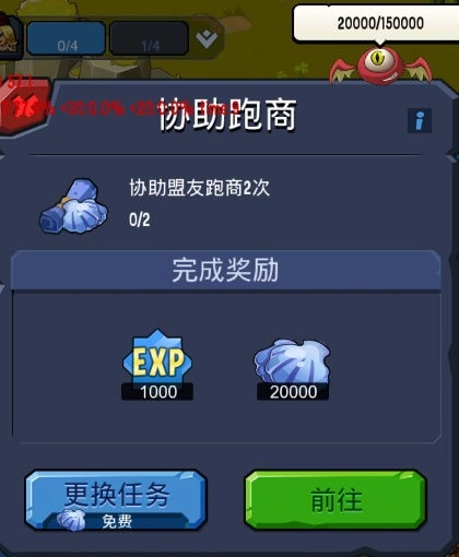 按照要求完成跑商任务可以获得经验值和蓝贝奖励,每天通过任务获取的蓝贝上限为15,0000.