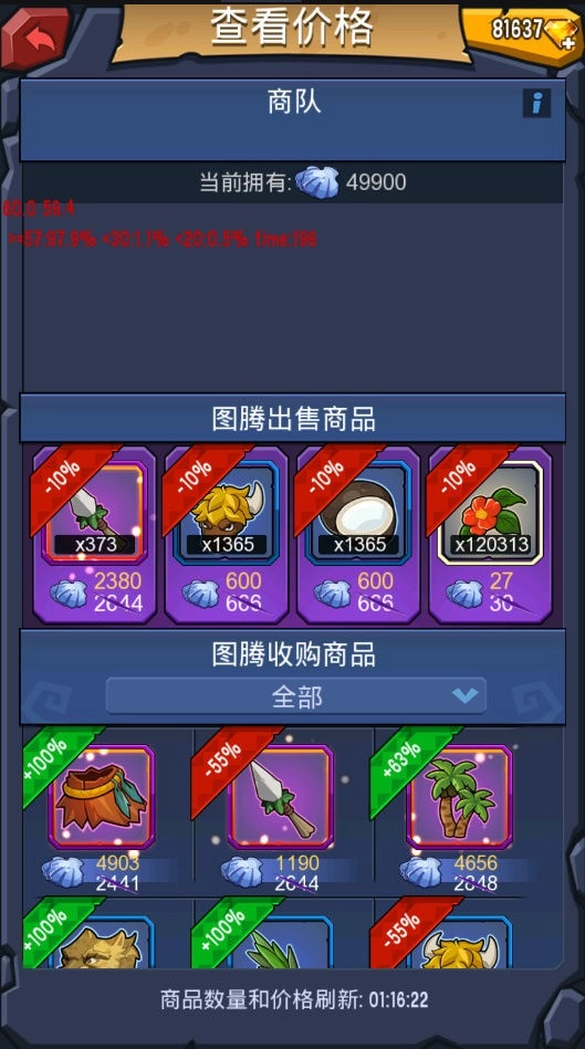 可以花费少量蓝贝查看当前图腾交易的所有商品的价格。越高级的图腾,出售商品的种类越多,稀有度也更高。