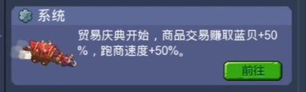 活动期间,交易赚取的蓝贝量+50%,跑商速度+50%