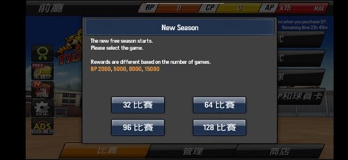 - 用你想要的游戏数量组成赛季。(16、32、64、128场)
