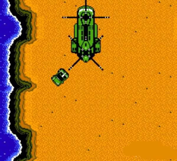3、游戏中玩家开着一辆吉普车与敌人作战,可以进行解救人质;