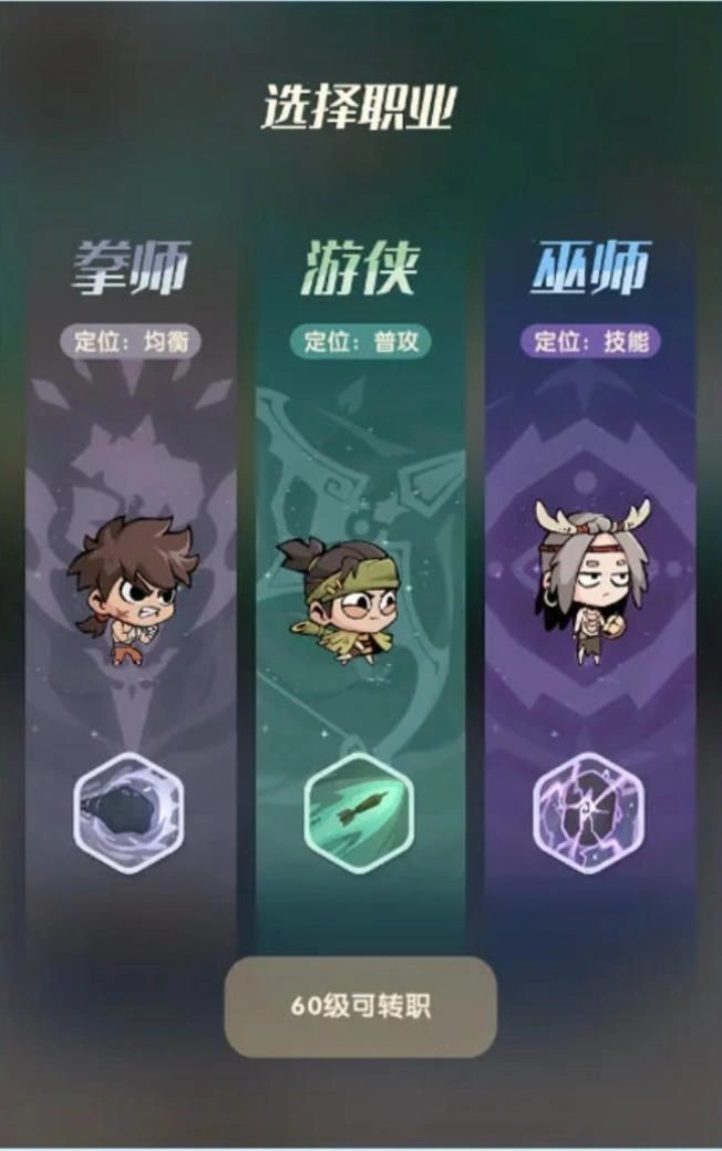 进入游戏正常跟随教程即可,值得注意得是 60 级以后我们可以转职三大职业(如下图所示)