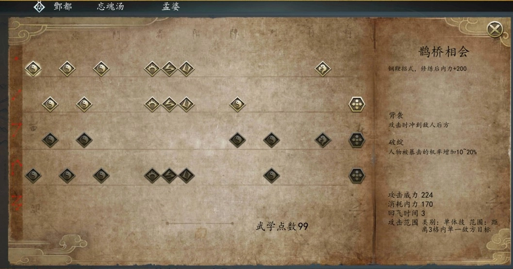 幽冥路中将采用与本体“四维”系统不一样的升级系统,使用战斗之后获得的武学点数来提升自己能力,或者学习新的天赋!